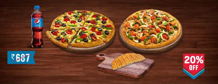 Regular Veg Paradise + Regular Farmhouse + Garlic Bread + Pepsi